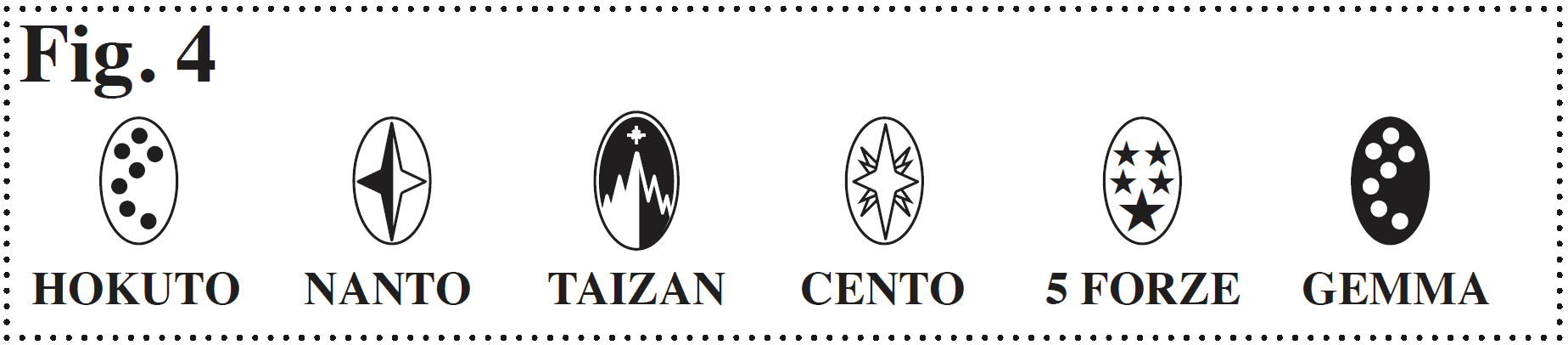 In alcune carte può comparire il Simbolo di Scuola: in questo caso sono chiamate carte “di Scuola”, quelle che invece non riportano tale simbolo sono chiamate “Non di Scuola”. Attualmente sono presenti nel gioco le Scuole di Hokuto, Nanto, Taizan, 5 Forze, Gemma dell’Hokuto e Cento, caratterizzate dai simboli raffigurati in [ Fig. 4 ].